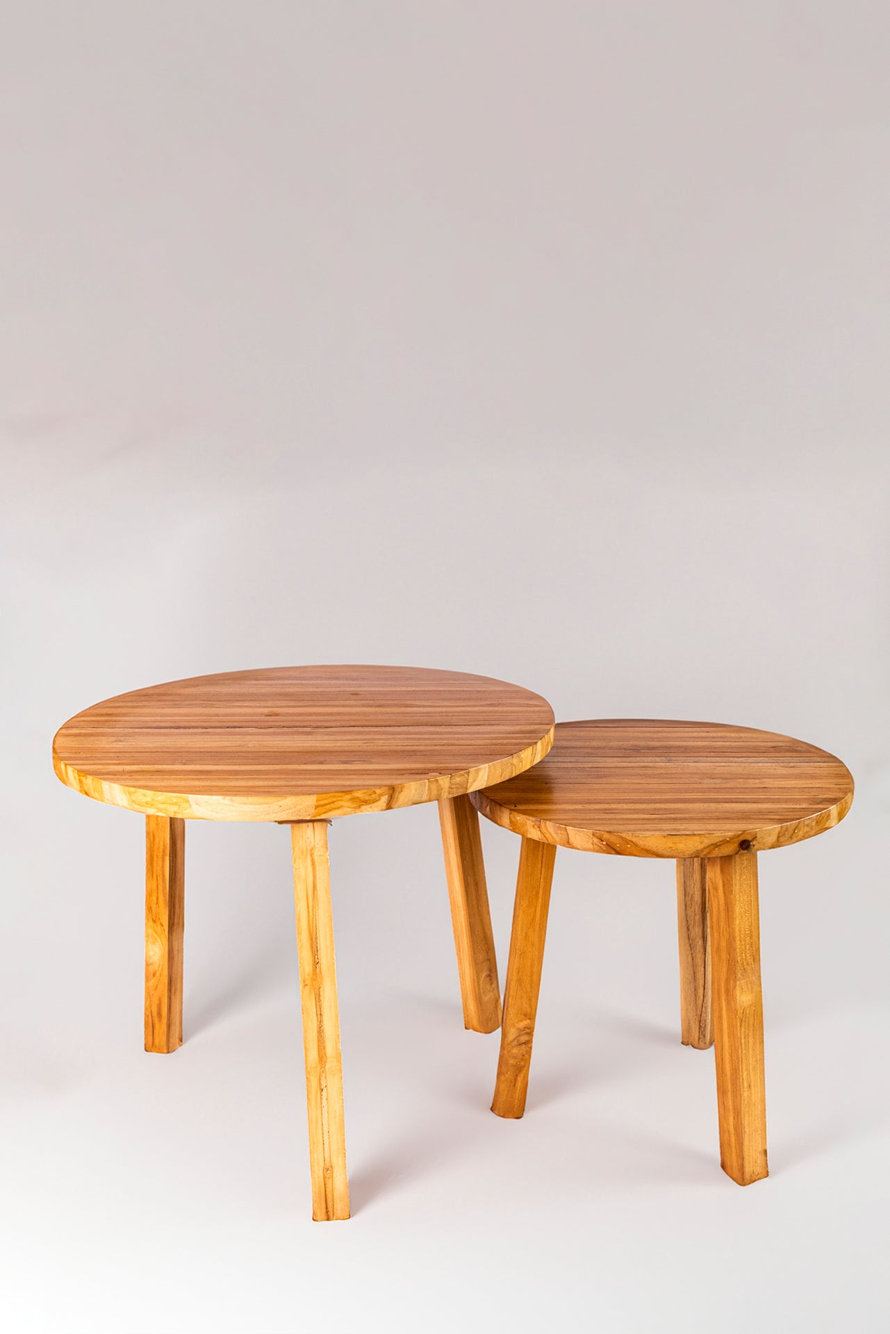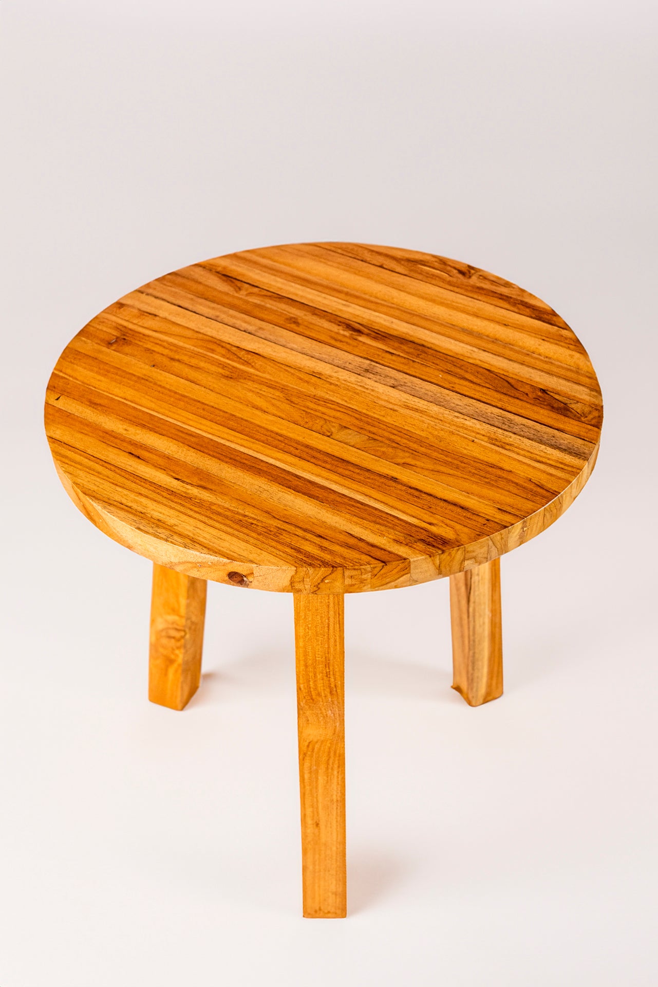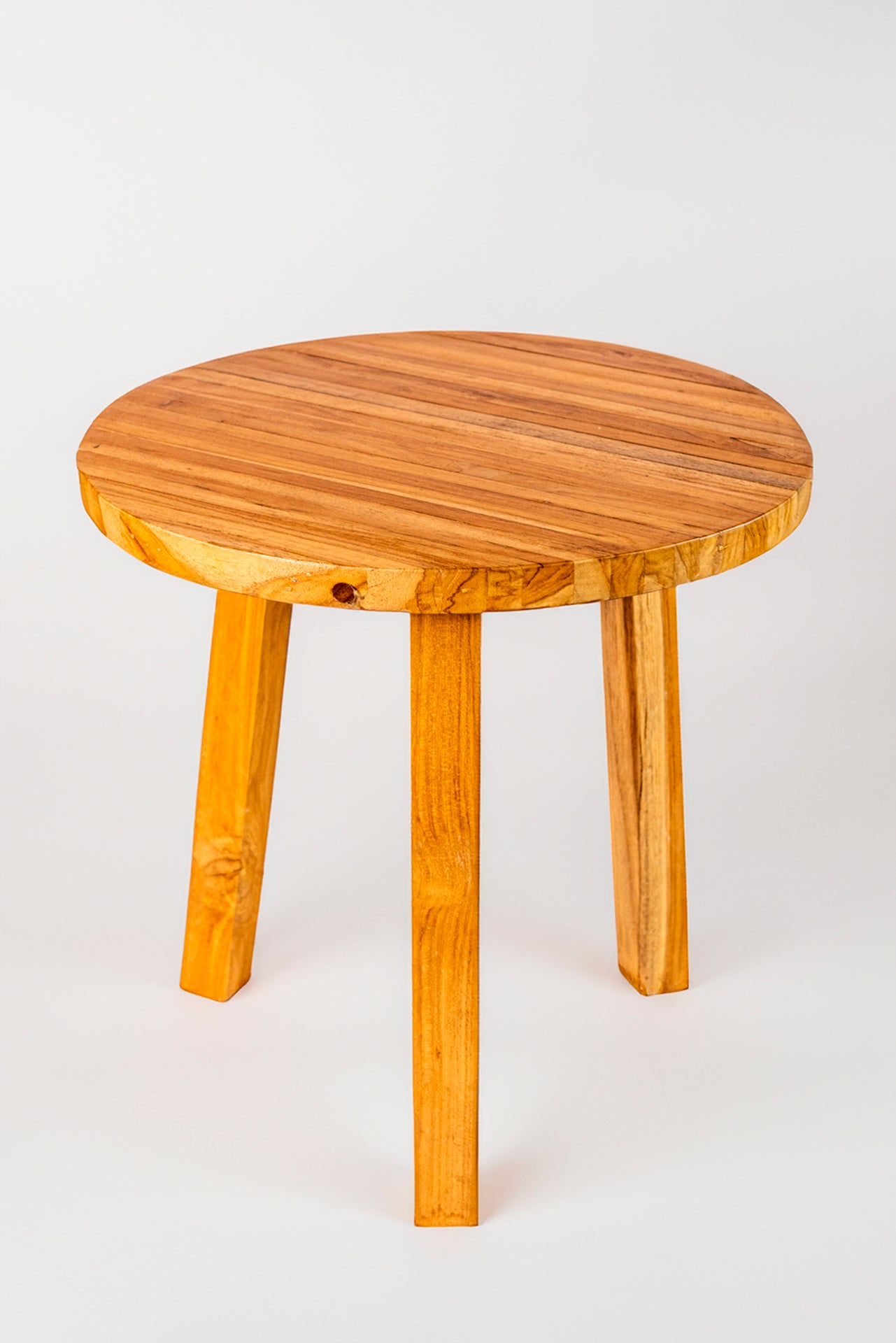 Estas mesitas son perfectas para una mesa de centro pequeña, hechos con uniones de teka y patas con una pequeña inclinación.