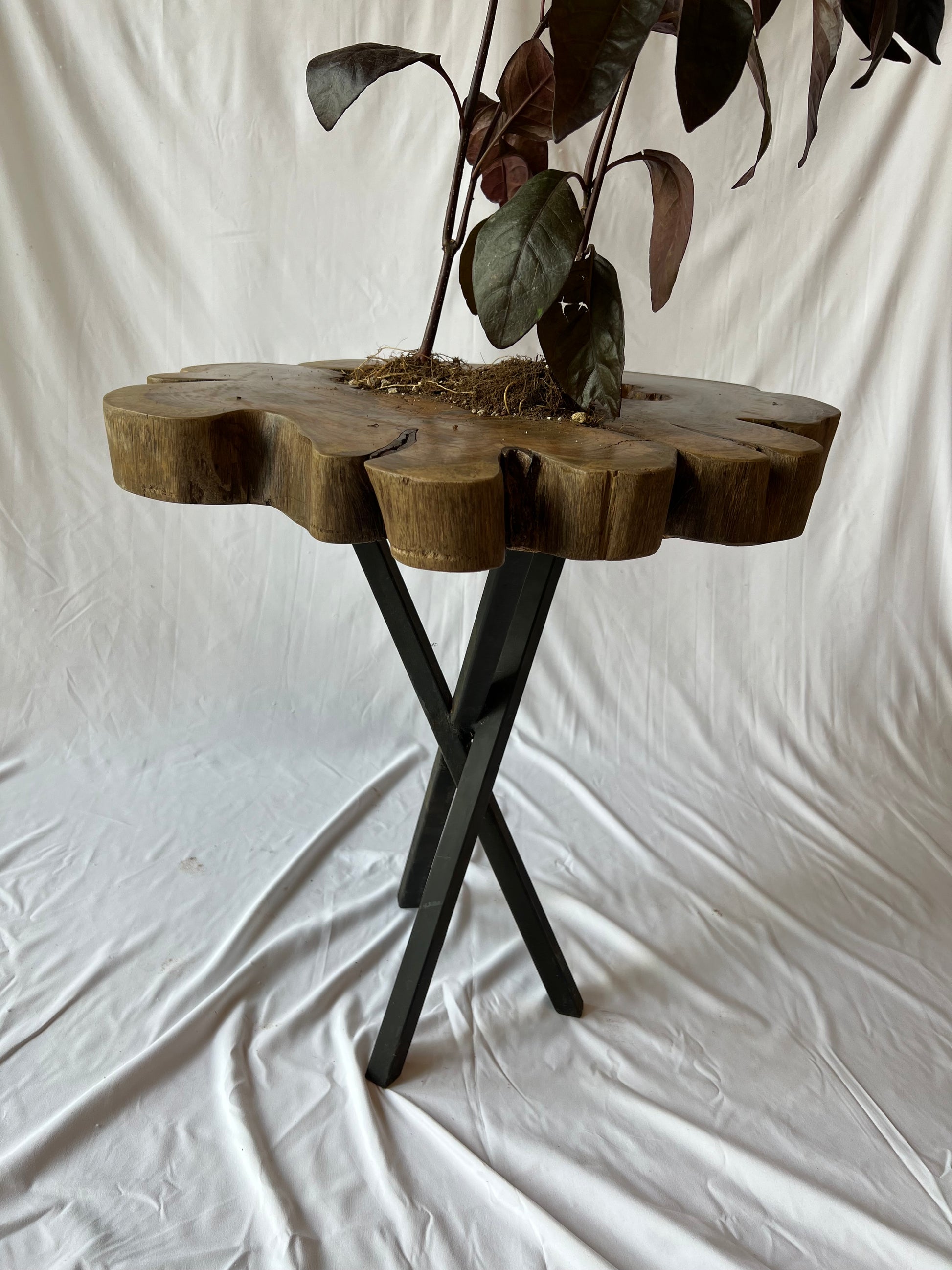 Esta mesita-maceta queda perfecto como mesa lateral de acento o para llenar una esquina en una decoración moderna. Las vetas y las figuras del Javín son completamente irrepetibles.