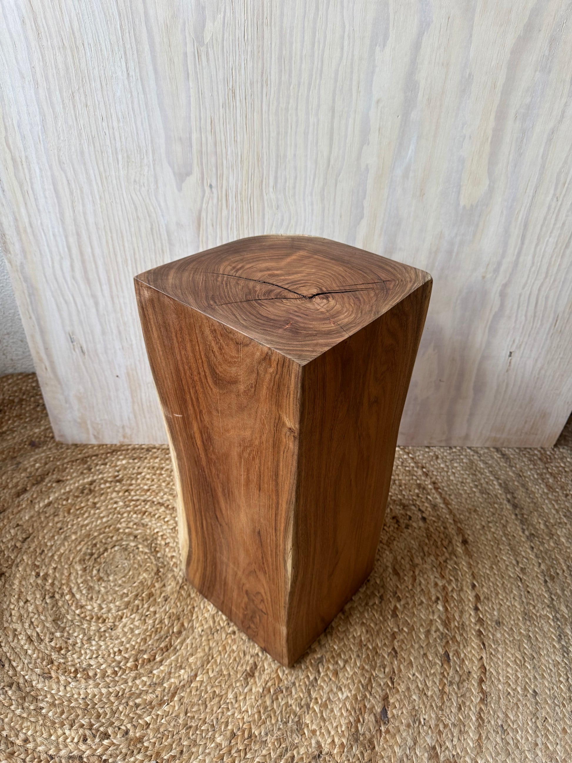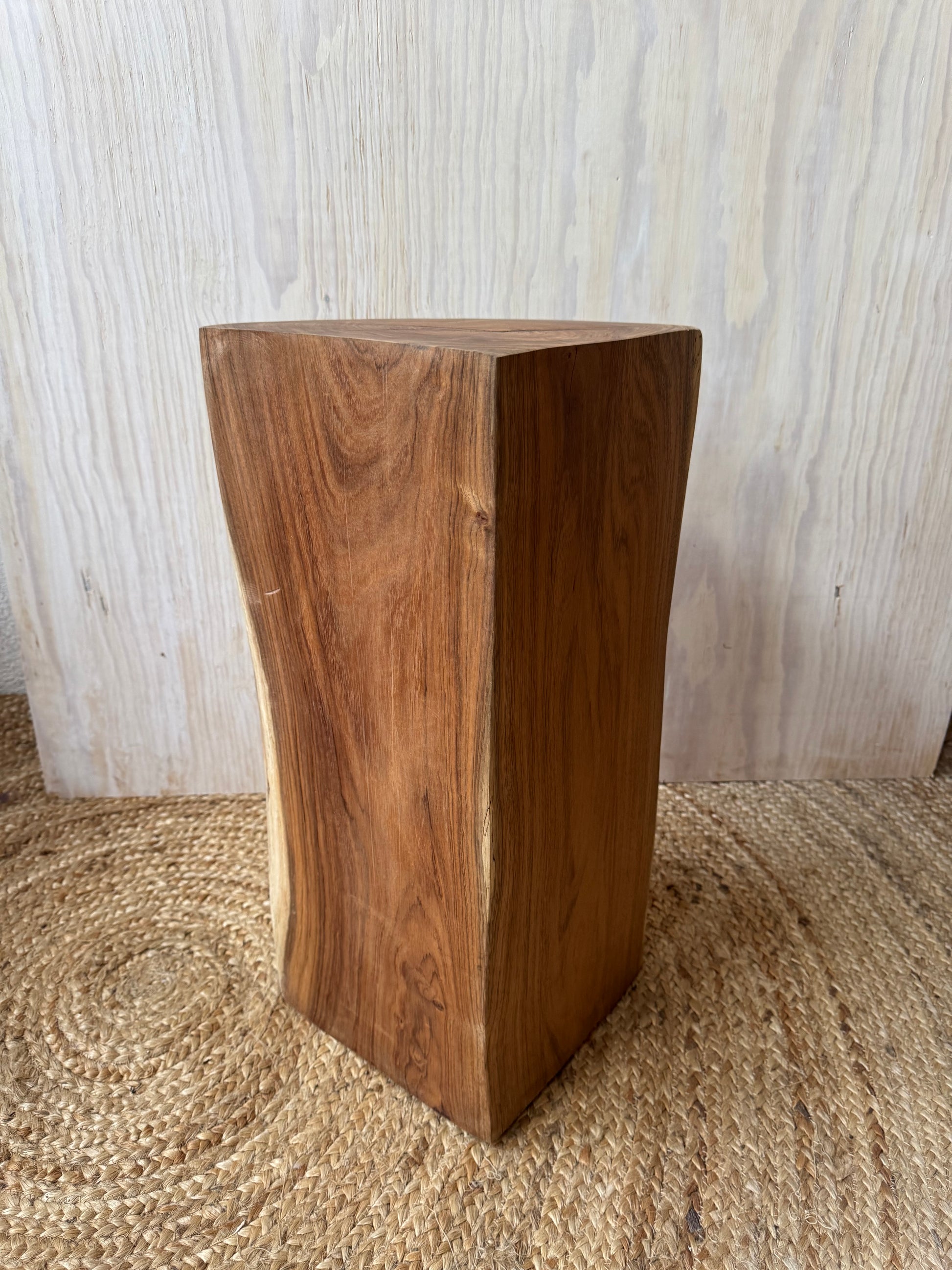 Esta mesita de una sola pieza de Tzalam se puede usar como pedestal o mesa de apoyo,