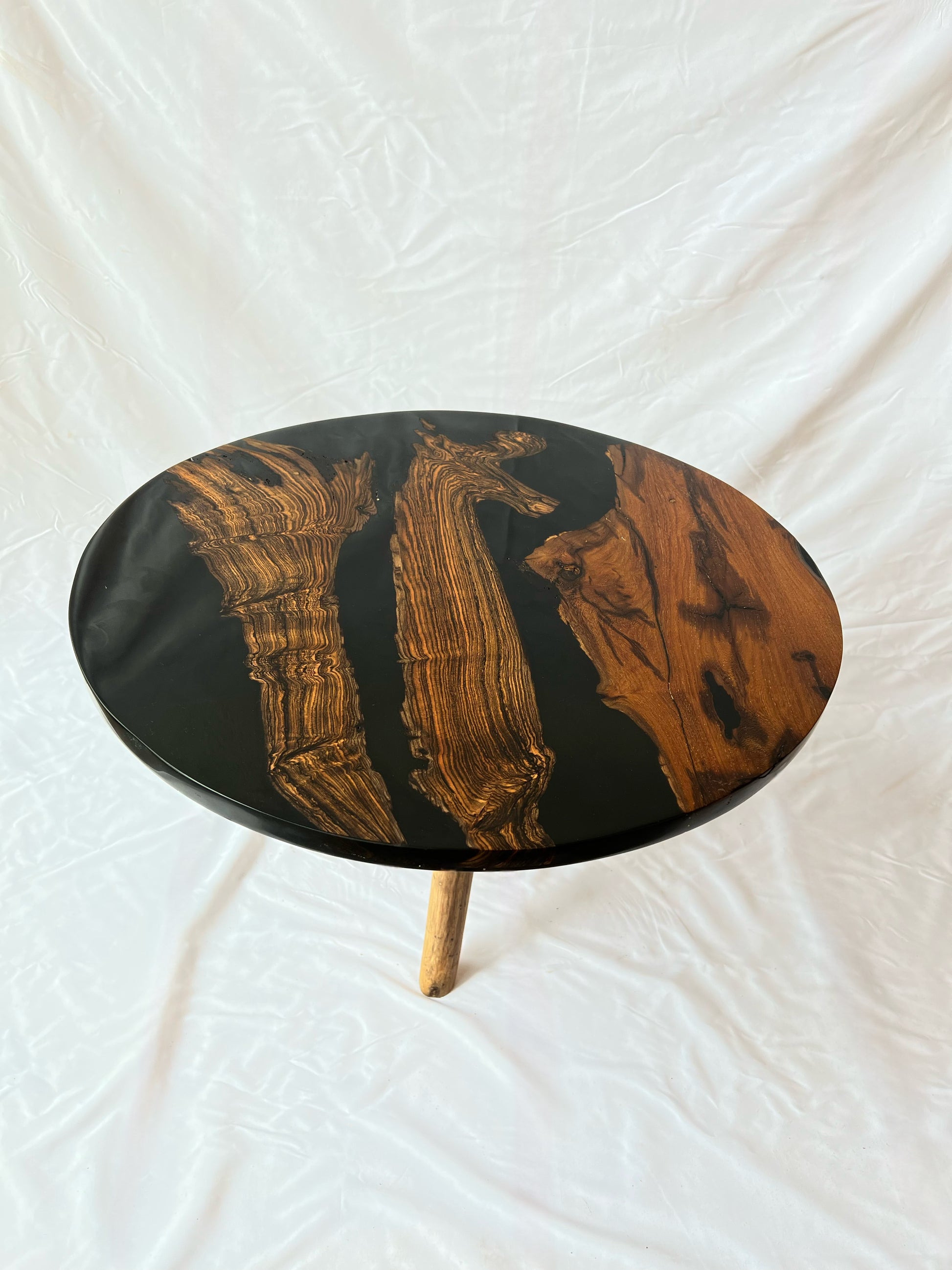 Esta mesa redonda de 60 cms es espectacular. Hecha con Ecopoxy negro, Cueramo y mezquite recuperados de ríos de Guerrero transformará tu espacio en un segundo.